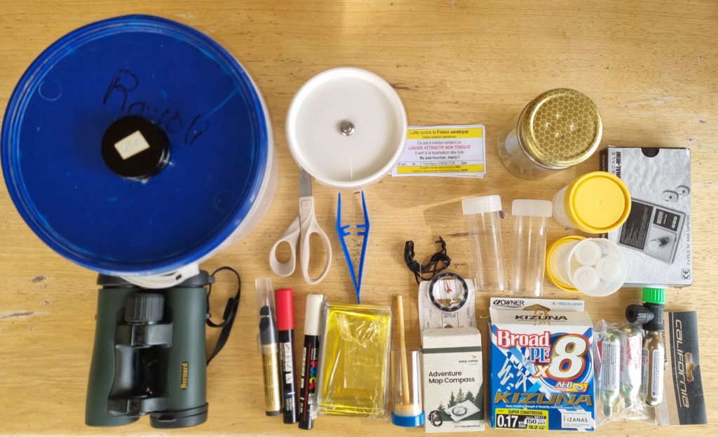 Dans tous les cas, il faut pouvoir attraper les frelons et les manipuler de manière sécuritaire. Un kit de traques et de manipulations a été développé pour les intervenants du canton du Jura. Il comprend les « ustensiles » suivants: